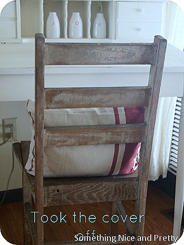 I also put the chair cover and couch cover in the washing machine, I had the couch cover off for a while but I like it better than the blue so I figure the more I wash it the softer it will get, it’s the third time for it. I have two of these chairs that were given to me as you can see they are chippy! The desk I found for $25.00 at a yardsale.